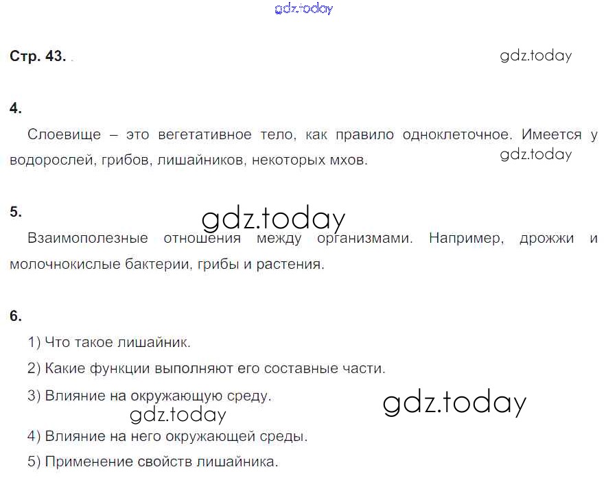 На страницах сайта gdz.today вы найдете учебный и вспомогательный материал, направленный на улучшения знаний школьной программы. ГДЗ - онлайн мир знаний Страницы (решение) 43 Рабочей тетради по Биологии для 5 класса Корнилова, Симонова Вентана-граф 2020