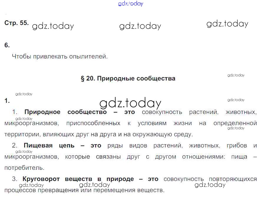 На страницах сайта gdz.today вы найдете учебный и вспомогательный материал, направленный на улучшения знаний школьной программы. ГДЗ - онлайн мир знаний Страницы (решение) 55 Рабочей тетради по Биологии для 5 класса Корнилова, Симонова Вентана-граф 2020