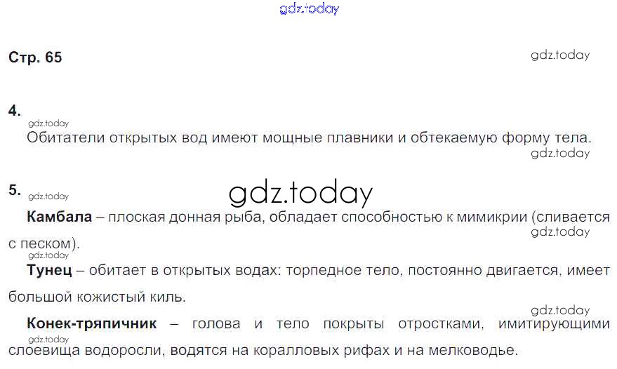 На страницах сайта gdz.today вы найдете учебный и вспомогательный материал, направленный на улучшения знаний школьной программы. ГДЗ - онлайн мир знаний Страницы (решение) 65 Рабочей тетради по Биологии для 5 класса Корнилова, Симонова Вентана-граф 2020