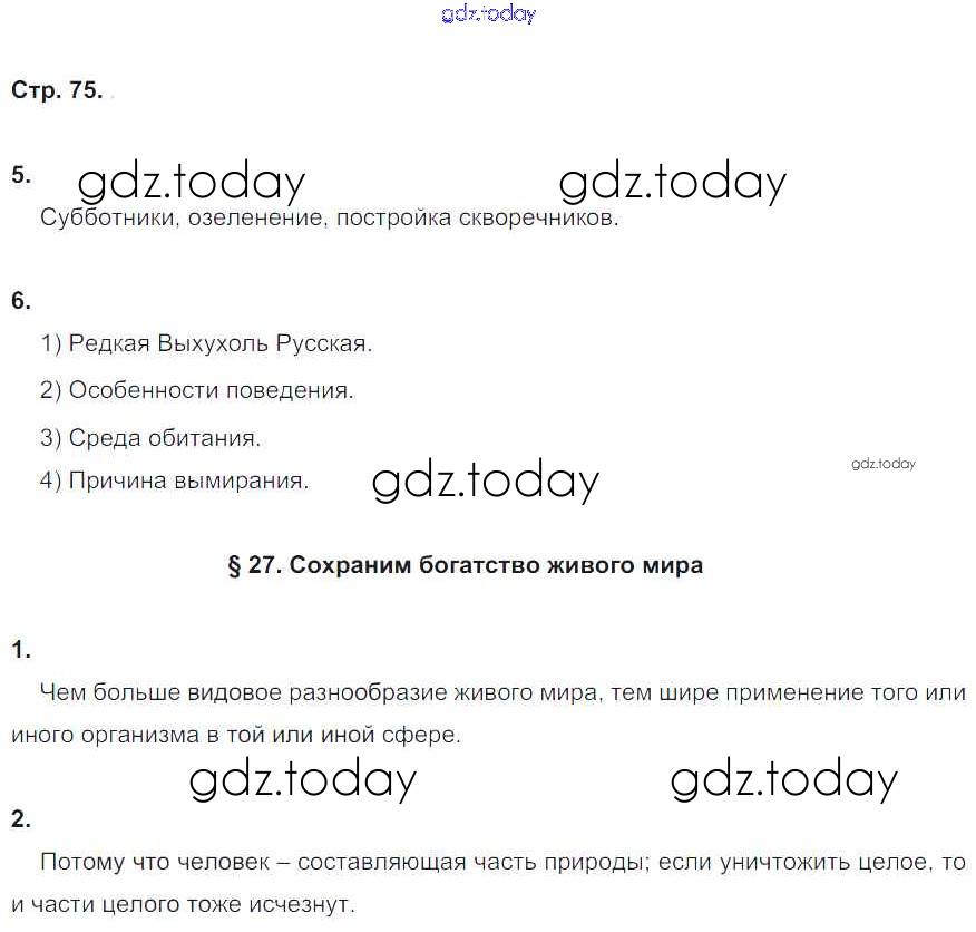 На страницах сайта gdz.today вы найдете учебный и вспомогательный материал, направленный на улучшения знаний школьной программы. ГДЗ - онлайн мир знаний Страницы (решение) 75 Рабочей тетради по Биологии для 5 класса Корнилова, Симонова Вентана-граф 2020