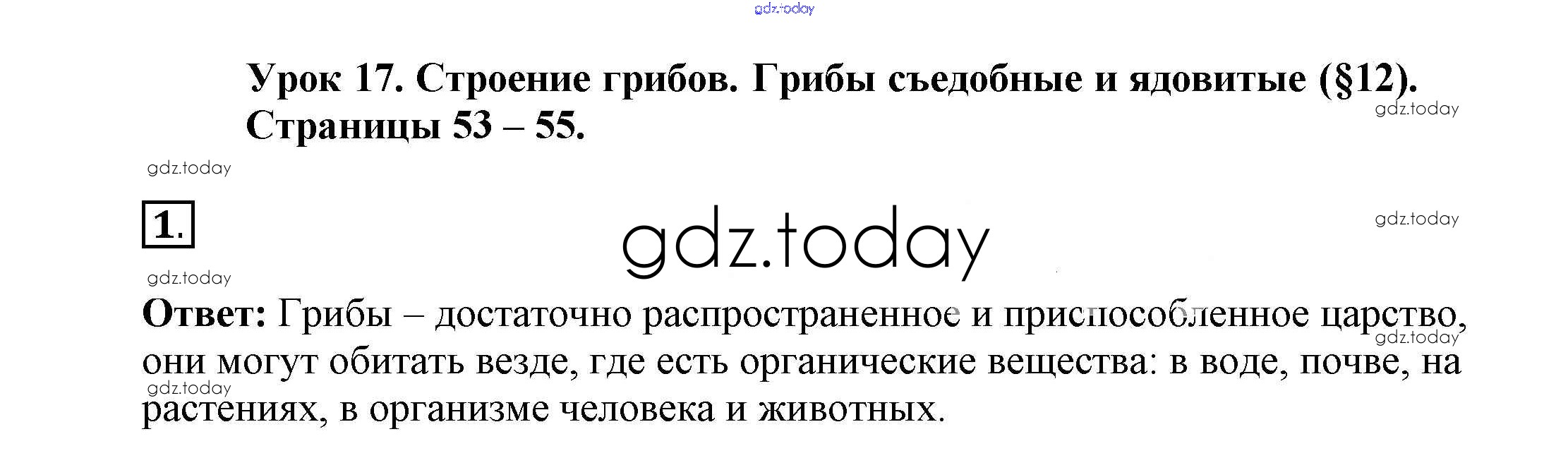 Ответы к Урок 17 Рабочая тетрадь 2015 (решение) 1 Рабочей тетради по Биологии для 5 класса Пасечник, Суматохин Просвещение, Просвещение Линия жизни 2015, 2020