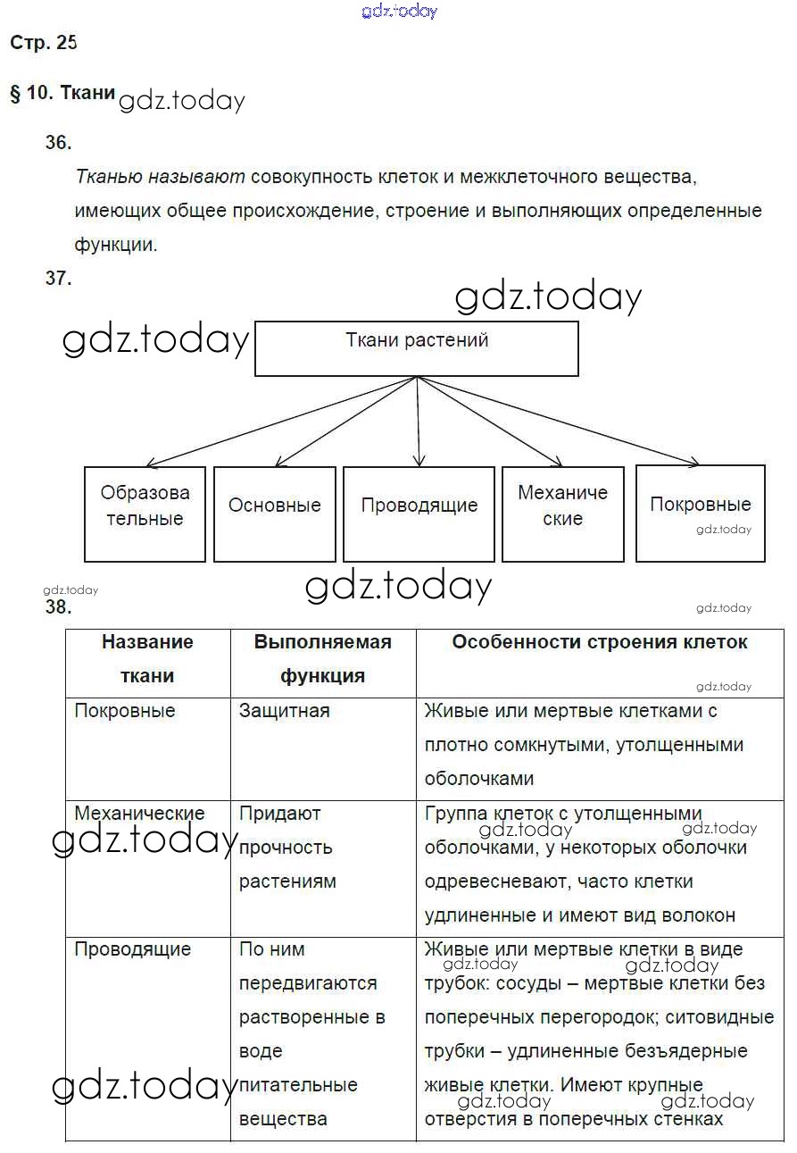 На страницах сайта gdz.today вы найдете учебный и вспомогательный материал, направленный на улучшения знаний школьной программы. ГДЗ - онлайн мир знаний Решение к § 10. Ткани стр. 25 Рабочей тетради по Биологии для 5 класса Пасечник Дрофа Вертикаль 2015