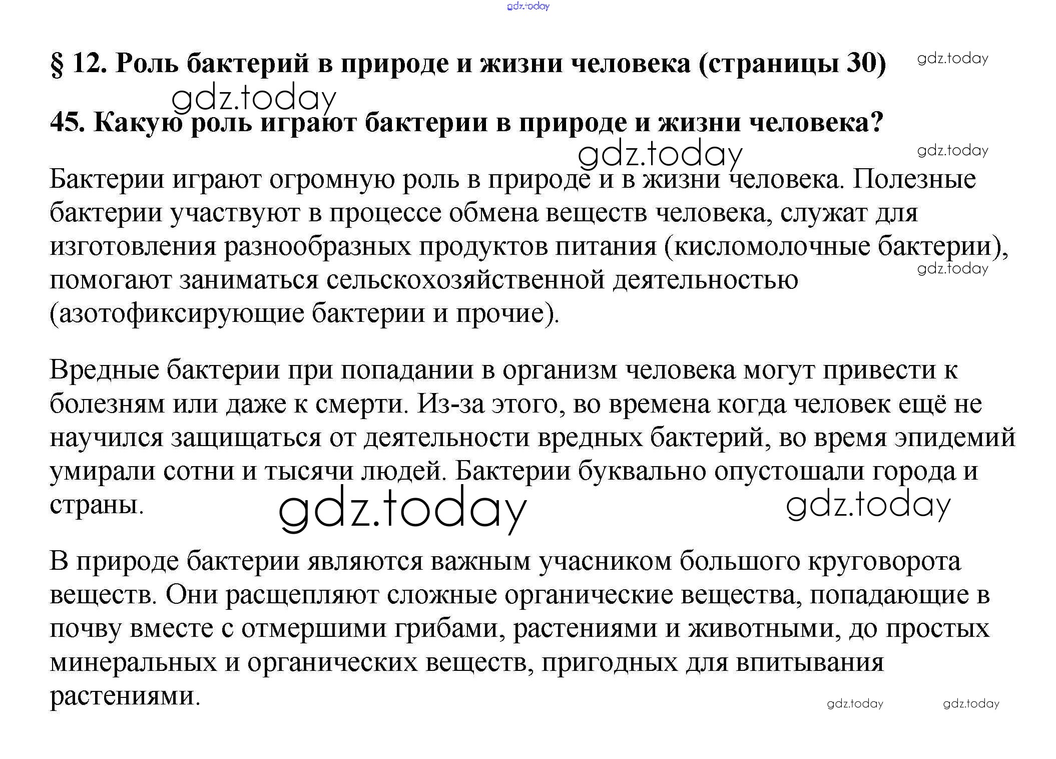 Решение к § 12. Роль бактерий в природе и жизни человека
