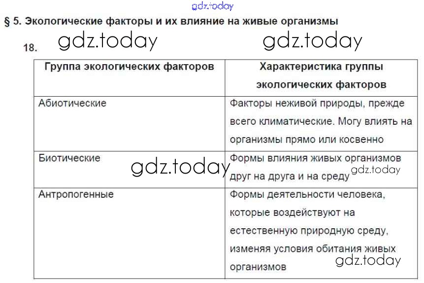 Решение к § 5. Экологические факторы и их влияние на живые организмы