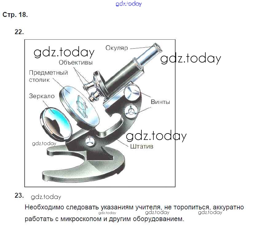 На страницах сайта gdz.today вы найдете учебный и вспомогательный материал, направленный на улучшения знаний школьной программы. ГДЗ - онлайн мир знаний Решение к § 6. Устройство увеличительных приборов стр. 18 Рабочей тетради по Биологии для 5 класса Пасечник Дрофа Вертикаль 2015