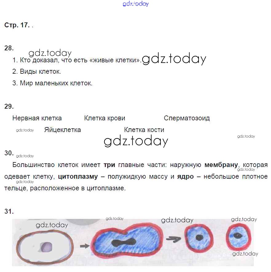 На страницах сайта gdz.today вы найдете учебный и вспомогательный материал, направленный на улучшения знаний школьной программы. ГДЗ - онлайн мир знаний Решение к части 1. Живой организм: строение и изучение (страницы) стр. 17 Рабочей тетради по Биологии для 5 класса Сонин Дрофа Вертикаль 2017