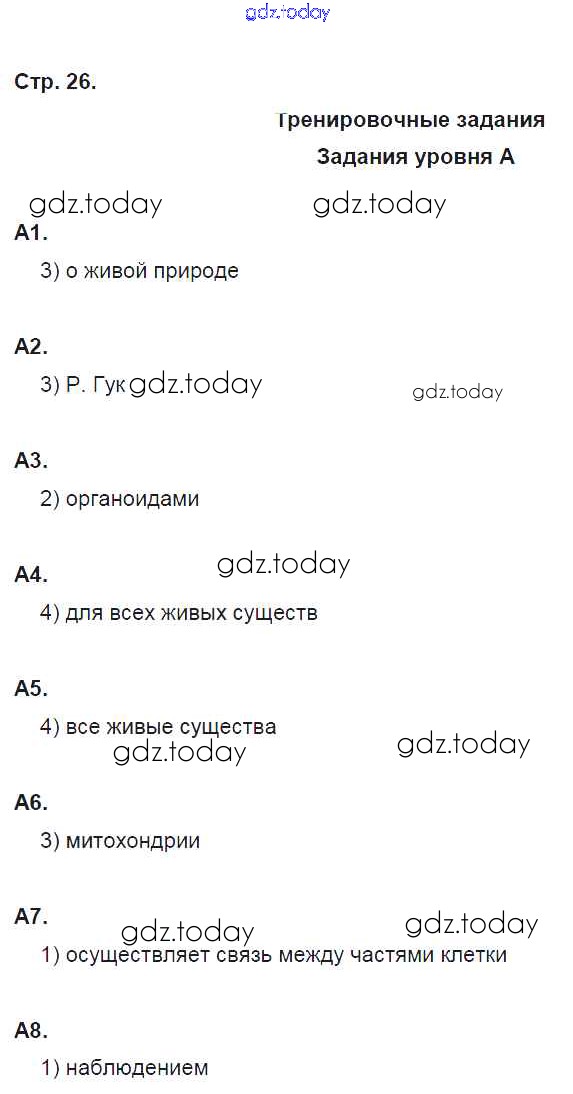 На страницах сайта gdz.today вы найдете учебный и вспомогательный материал, направленный на улучшения знаний школьной программы. ГДЗ - онлайн мир знаний Решение к части 1. Живой организм: строение и изучение (страницы) стр. 26 Рабочей тетради по Биологии для 5 класса Сонин Дрофа Вертикаль 2017