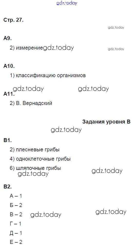 Ответы к Решение к части 1. Живой организм: строение и изучение (страницы) стр. 27 Рабочей тетради по Биологии для 5 класса Сонин Дрофа Вертикаль 2017