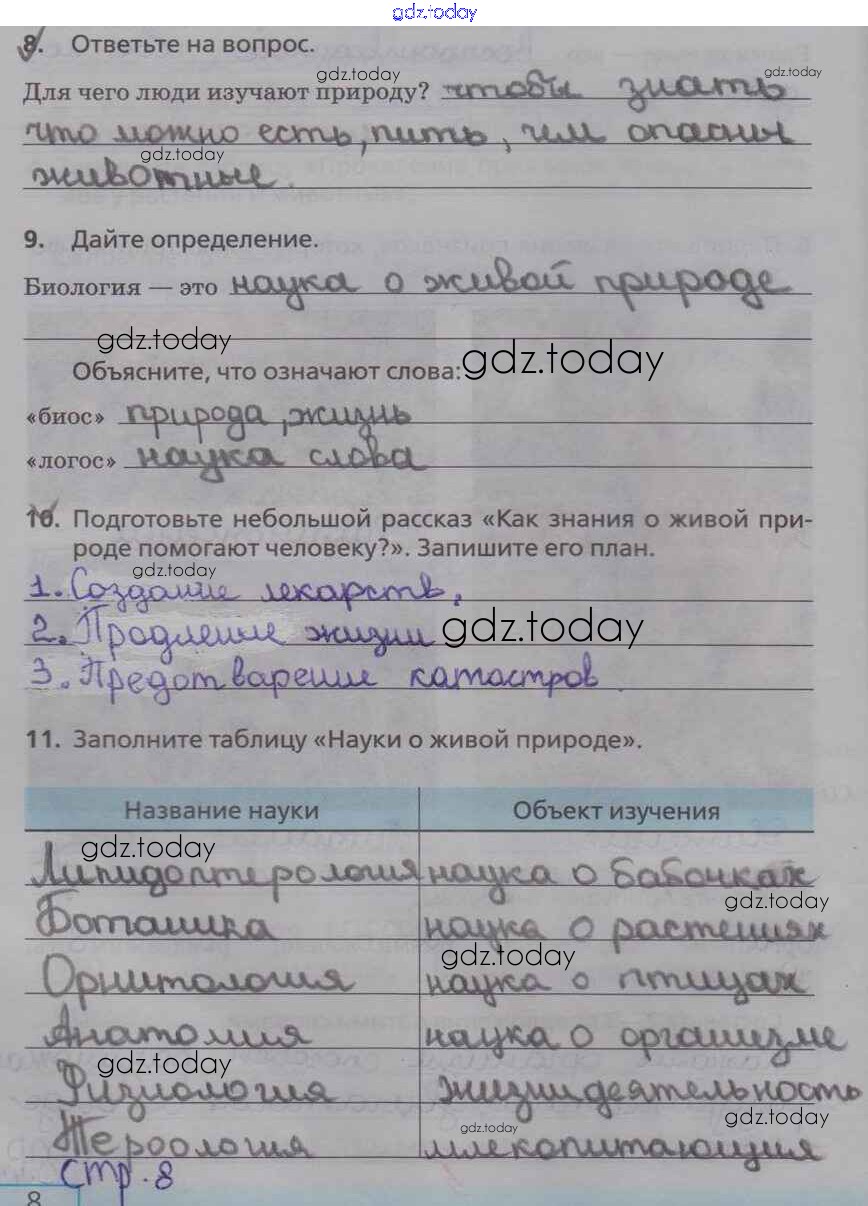 На страницах сайта gdz.today вы найдете учебный и вспомогательный материал, направленный на улучшения знаний школьной программы. ГДЗ - онлайн мир знаний Решение к части 1. Живой организм: строение и изучение (страницы) стр. 8 Рабочей тетради по Биологии для 5 класса Сонин Дрофа Вертикаль 2017
