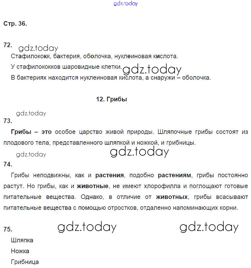 На страницах сайта gdz.today вы найдете учебный и вспомогательный материал, направленный на улучшения знаний школьной программы. ГДЗ - онлайн мир знаний Решение к части 2. Многообразие живых организмов (страницы) стр. 36 Рабочей тетради по Биологии для 5 класса Сонин Дрофа Вертикаль 2017