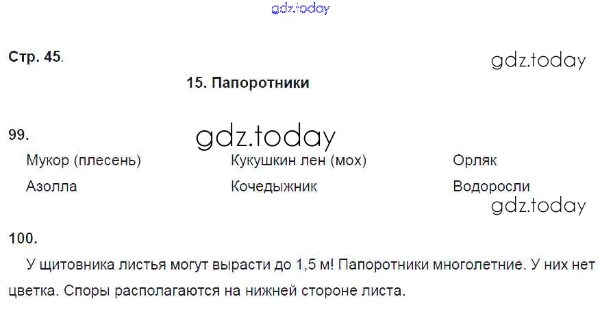 Ответы к Решение к части 2. Многообразие живых организмов (страницы) стр. 45 Рабочей тетради по Биологии для 5 класса Сонин Дрофа Вертикаль 2017