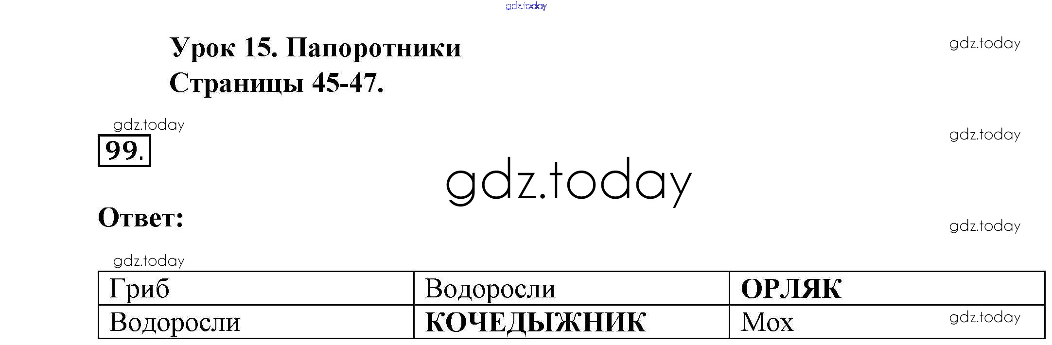 На страницах сайта gdz.today вы найдете учебный и вспомогательный материал, направленный на улучшения знаний школьной программы. ГДЗ - онлайн мир знаний Решение к части 2. Многообразие живых организмов (страницы) стр. 45 Рабочей тетради по Биологии для 5 класса Сонин Дрофа Вертикаль 2017