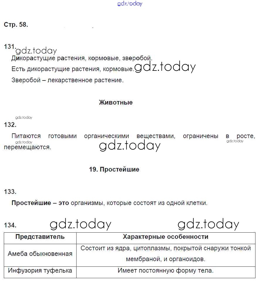На страницах сайта gdz.today вы найдете учебный и вспомогательный материал, направленный на улучшения знаний школьной программы. ГДЗ - онлайн мир знаний Решение к части 2. Многообразие живых организмов (страницы) стр. 58 Рабочей тетради по Биологии для 5 класса Сонин Дрофа Вертикаль 2017