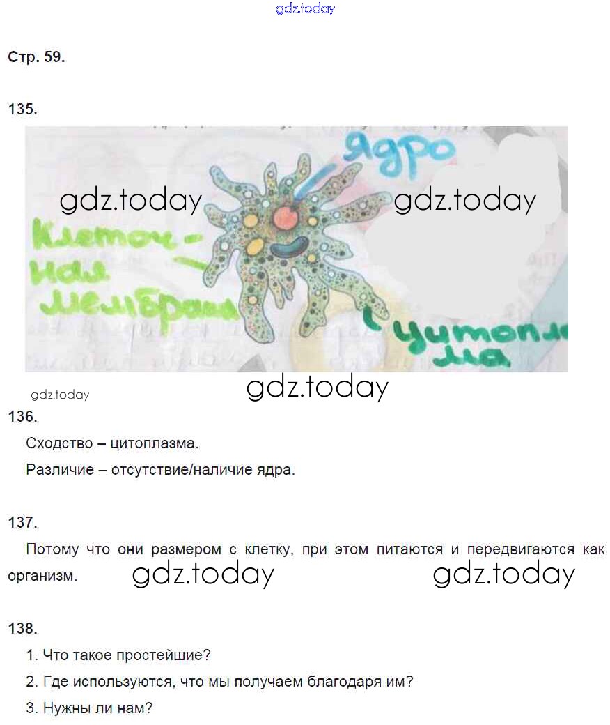 На страницах сайта gdz.today вы найдете учебный и вспомогательный материал, направленный на улучшения знаний школьной программы. ГДЗ - онлайн мир знаний Решение к части 2. Многообразие живых организмов (страницы) стр. 59 Рабочей тетради по Биологии для 5 класса Сонин Дрофа Вертикаль 2017