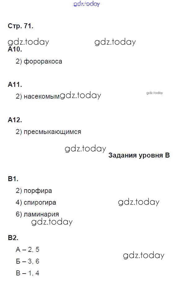 Ответы к Решение к части 2. Многообразие живых организмов (страницы) стр. 71 Рабочей тетради по Биологии для 5 класса Сонин Дрофа Вертикаль 2017