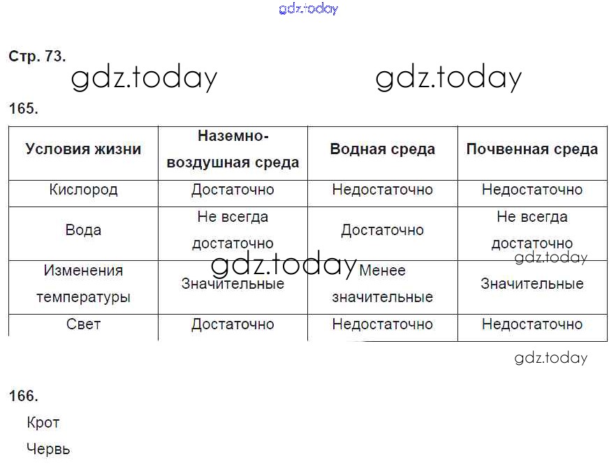 На страницах сайта gdz.today вы найдете учебный и вспомогательный материал, направленный на улучшения знаний школьной программы. ГДЗ - онлайн мир знаний Решение к части 3. Среда обитания живых организмов (страницы) стр. 73 Рабочей тетради по Биологии для 5 класса Сонин Дрофа Вертикаль 2017