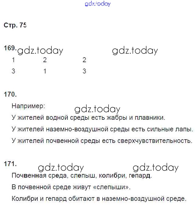 На страницах сайта gdz.today вы найдете учебный и вспомогательный материал, направленный на улучшения знаний школьной программы. ГДЗ - онлайн мир знаний Решение к части 3. Среда обитания живых организмов (страницы) стр. 75 Рабочей тетради по Биологии для 5 класса Сонин Дрофа Вертикаль 2017