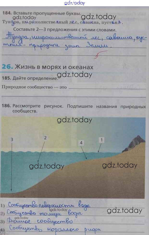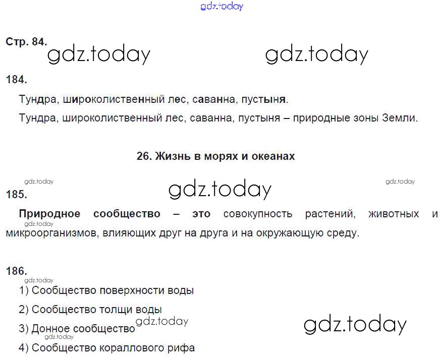 На страницах сайта gdz.today вы найдете учебный и вспомогательный материал, направленный на улучшения знаний школьной программы. ГДЗ - онлайн мир знаний Решение к части 3. Среда обитания живых организмов (страницы) стр. 84 Рабочей тетради по Биологии для 5 класса Сонин Дрофа Вертикаль 2017
