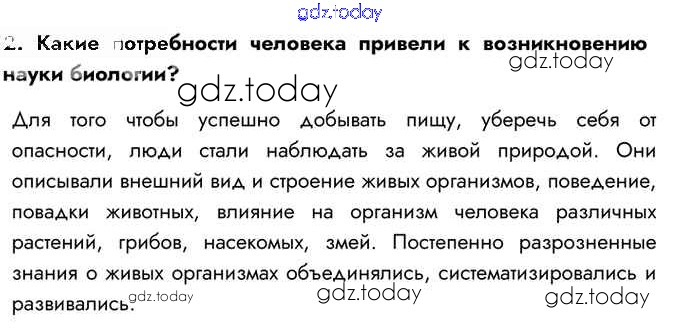 На страницах сайта gdz.today вы найдете учебный и вспомогательный материал, направленный на улучшения знаний школьной программы. ГДЗ - онлайн мир знаний Решение к §2 2 Учебнику по Биологии для 5 класса Сивоглазов, Плешаков Дрофа 2020