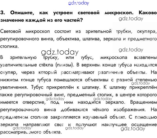 На страницах сайта gdz.today вы найдете учебный и вспомогательный материал, направленный на улучшения знаний школьной программы. ГДЗ - онлайн мир знаний Решение к §4 3 Учебнику по Биологии для 5 класса Сивоглазов, Плешаков Дрофа 2020
