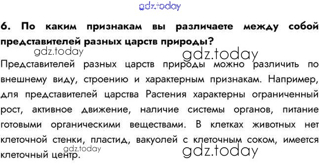 На страницах сайта gdz.today вы найдете учебный и вспомогательный материал, направленный на улучшения знаний школьной программы. ГДЗ - онлайн мир знаний Решение к §10 6 Учебнику по Биологии для 5 класса Сивоглазов, Плешаков Дрофа 2020
