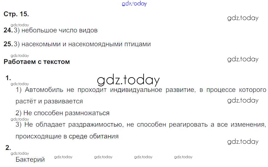 На страницах сайта gdz.today вы найдете учебный и вспомогательный материал, направленный на улучшения знаний школьной программы. ГДЗ - онлайн мир знаний Решение к части 1. Страницы 15 Тетради-тренажеру по Биологии для 5-6 класса Сухорукова, Кучменко Просвещение Сферы 2016