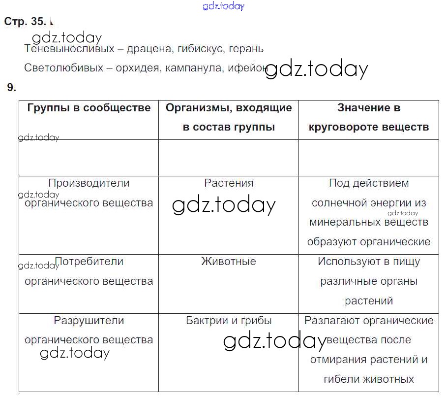 На страницах сайта gdz.today вы найдете учебный и вспомогательный материал, направленный на улучшения знаний школьной программы. ГДЗ - онлайн мир знаний Решение к части 1. Страницы 35 Тетради-тренажеру по Биологии для 5-6 класса Сухорукова, Кучменко Просвещение Сферы 2016
