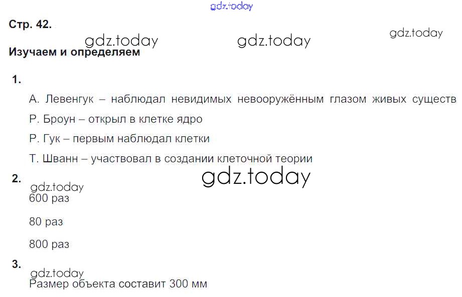 На страницах сайта gdz.today вы найдете учебный и вспомогательный материал, направленный на улучшения знаний школьной программы. ГДЗ - онлайн мир знаний Решение к части 1. Страницы 42 Тетради-тренажеру по Биологии для 5-6 класса Сухорукова, Кучменко Просвещение Сферы 2016