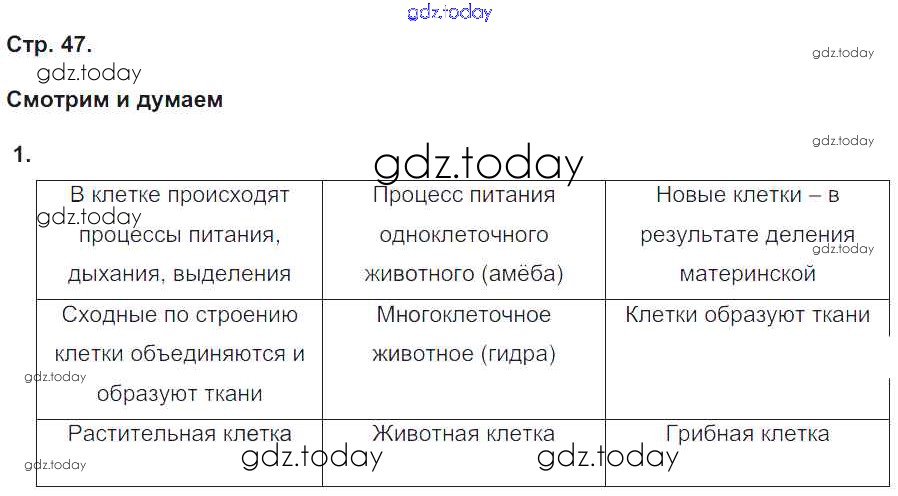 На страницах сайта gdz.today вы найдете учебный и вспомогательный материал, направленный на улучшения знаний школьной программы. ГДЗ - онлайн мир знаний Решение к части 1. Страницы 47 Тетради-тренажеру по Биологии для 5-6 класса Сухорукова, Кучменко Просвещение Сферы 2016
