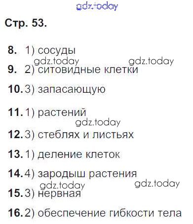 На страницах сайта gdz.today вы найдете учебный и вспомогательный материал, направленный на улучшения знаний школьной программы. ГДЗ - онлайн мир знаний Решение к части 1. Страницы 53 Тетради-тренажеру по Биологии для 5-6 класса Сухорукова, Кучменко Просвещение Сферы 2016
