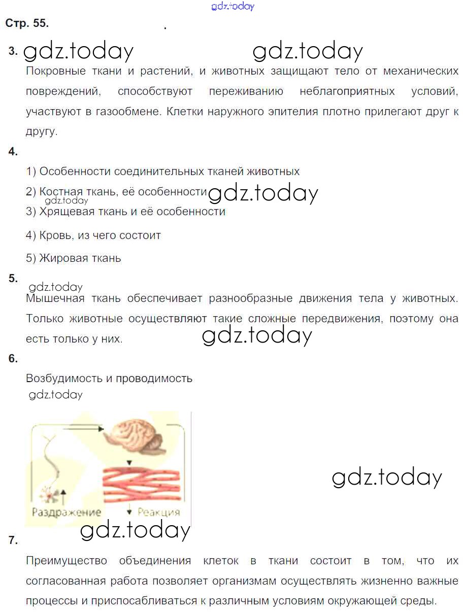 На страницах сайта gdz.today вы найдете учебный и вспомогательный материал, направленный на улучшения знаний школьной программы. ГДЗ - онлайн мир знаний Решение к части 1. Страницы 55 Тетради-тренажеру по Биологии для 5-6 класса Сухорукова, Кучменко Просвещение Сферы 2016