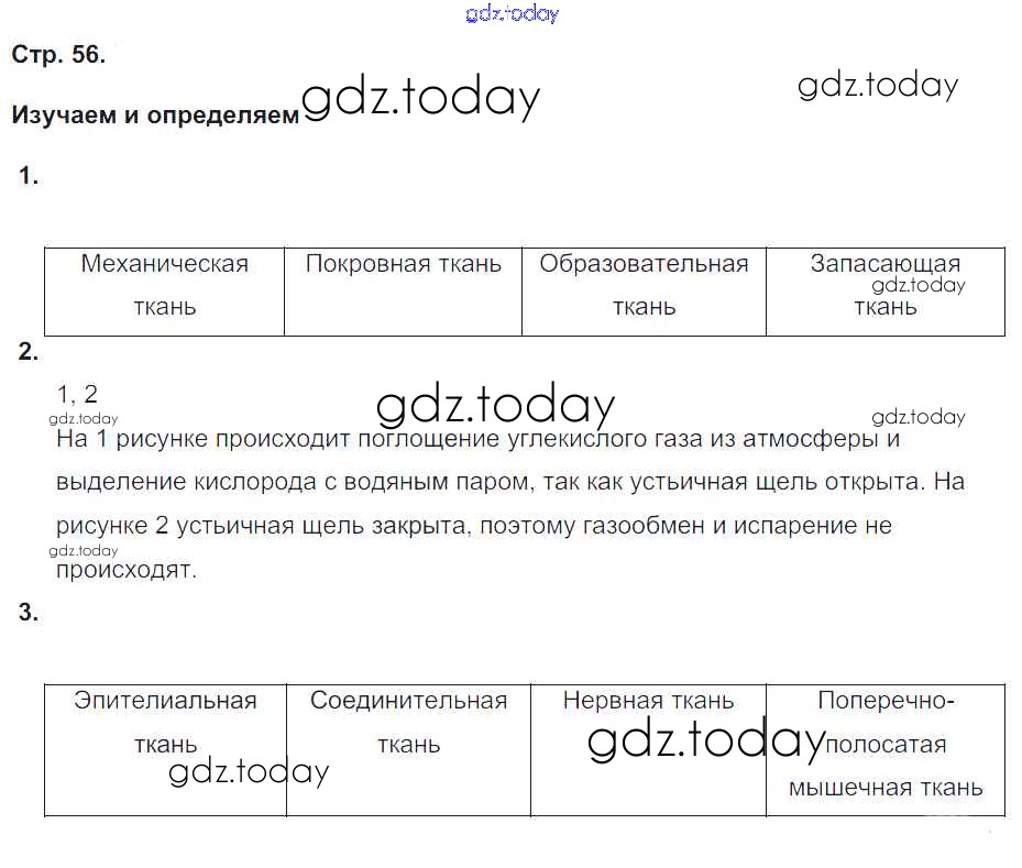На страницах сайта gdz.today вы найдете учебный и вспомогательный материал, направленный на улучшения знаний школьной программы. ГДЗ - онлайн мир знаний Решение к части 1. Страницы 56 Тетради-тренажеру по Биологии для 5-6 класса Сухорукова, Кучменко Просвещение Сферы 2016