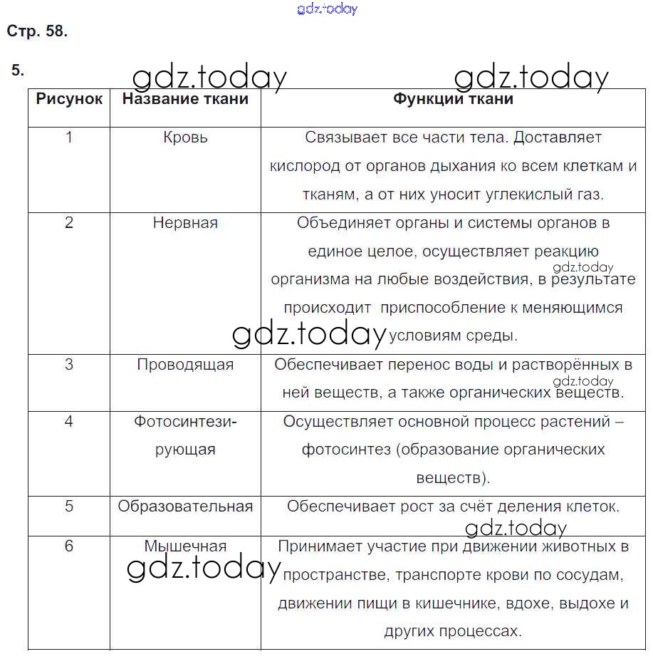 На страницах сайта gdz.today вы найдете учебный и вспомогательный материал, направленный на улучшения знаний школьной программы. ГДЗ - онлайн мир знаний Решение к части 1. Страницы 58 Тетради-тренажеру по Биологии для 5-6 класса Сухорукова, Кучменко Просвещение Сферы 2016