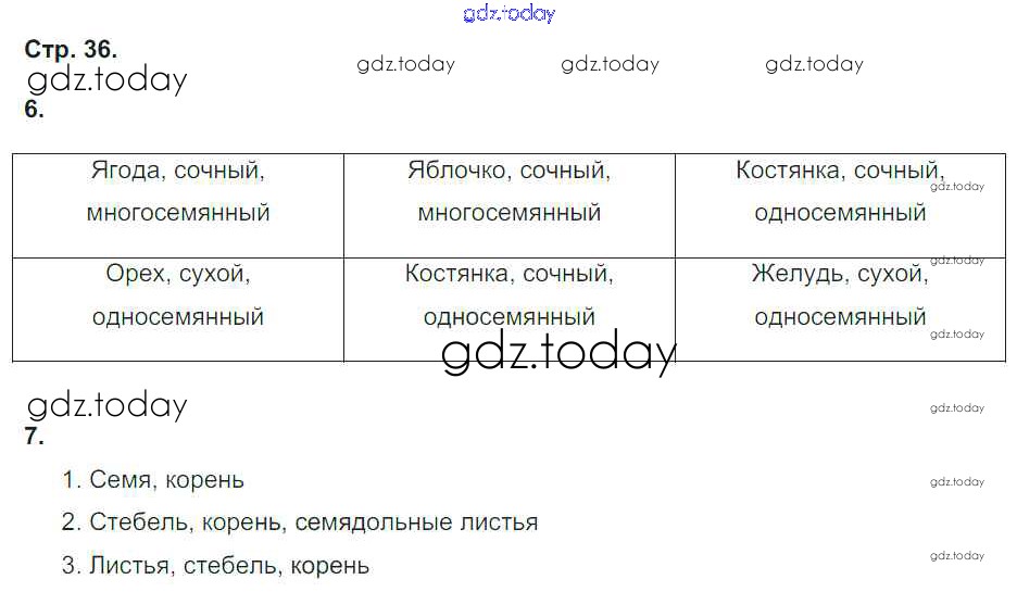 На страницах сайта gdz.today вы найдете учебный и вспомогательный материал, направленный на улучшения знаний школьной программы. ГДЗ - онлайн мир знаний Решение к части 2. Страницы 36 Тетради-тренажеру по Биологии для 5-6 класса Сухорукова, Кучменко Просвещение Сферы 2016