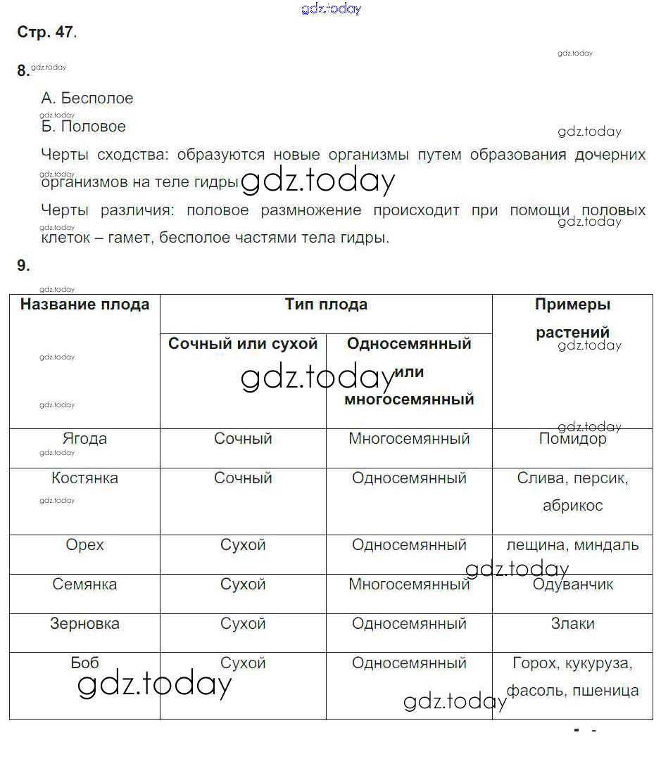 На страницах сайта gdz.today вы найдете учебный и вспомогательный материал, направленный на улучшения знаний школьной программы. ГДЗ - онлайн мир знаний Решение к части 2. Страницы 47 Тетради-тренажеру по Биологии для 5-6 класса Сухорукова, Кучменко Просвещение Сферы 2016