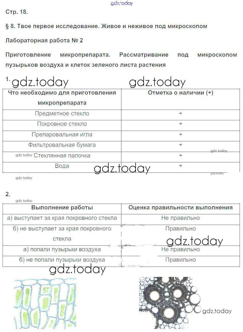 На страницах сайта gdz.today вы найдете учебный и вспомогательный материал, направленный на улучшения знаний школьной программы. ГДЗ - онлайн мир знаний Решение к части 1. Страницы 18 Рабочей тетради по Биологии для 5-6 класса Сухова, Строганов Вентана-граф Алгоритм успеха 2015
