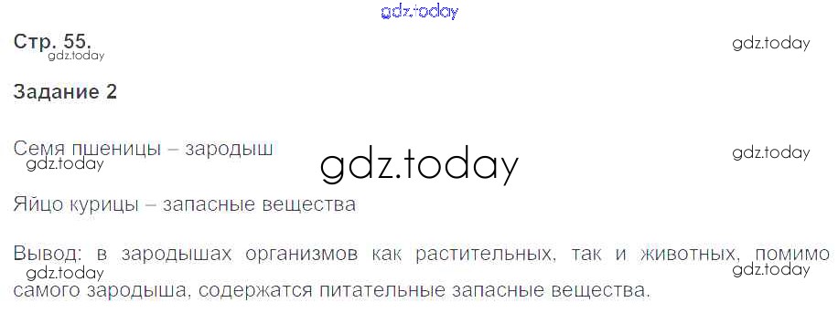 На страницах сайта gdz.today вы найдете учебный и вспомогательный материал, направленный на улучшения знаний школьной программы. ГДЗ - онлайн мир знаний Решение к части 1. Страницы 55 Рабочей тетради по Биологии для 5-6 класса Сухова, Строганов Вентана-граф Алгоритм успеха 2015