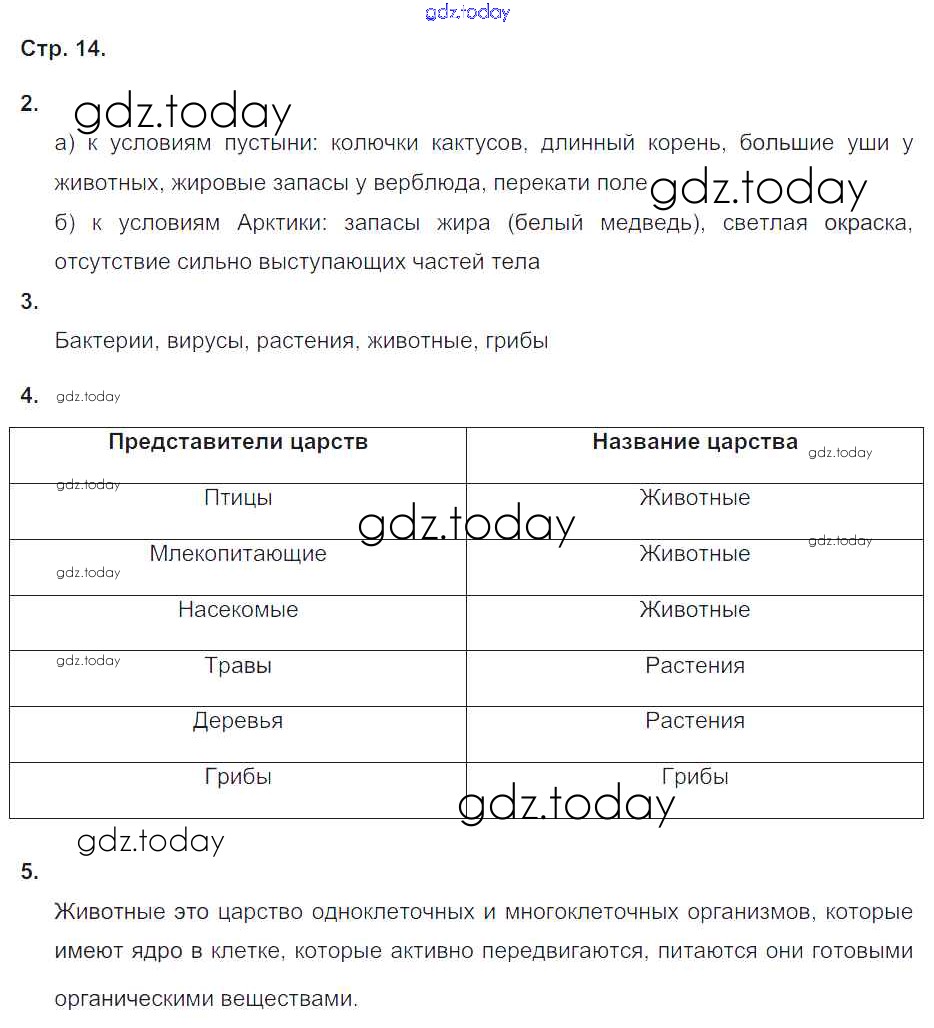 На страницах сайта gdz.today вы найдете учебный и вспомогательный материал, направленный на улучшения знаний школьной программы. ГДЗ - онлайн мир знаний Решение к части 2. Страницы 14 Рабочей тетради по Биологии для 5-6 класса Сухова, Строганов Вентана-граф Алгоритм успеха 2015