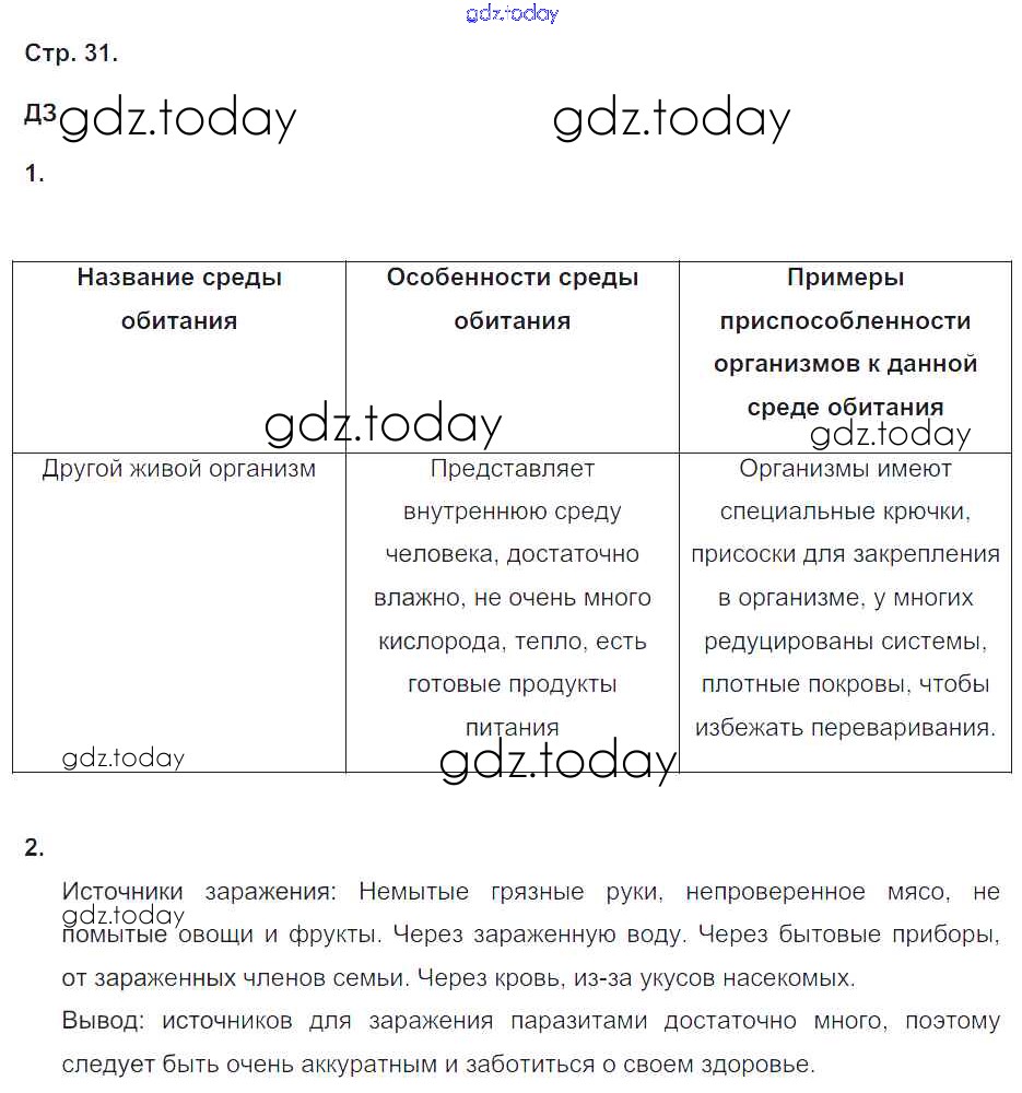 На страницах сайта gdz.today вы найдете учебный и вспомогательный материал, направленный на улучшения знаний школьной программы. ГДЗ - онлайн мир знаний Решение к части 2. Страницы 31 Рабочей тетради по Биологии для 5-6 класса Сухова, Строганов Вентана-граф Алгоритм успеха 2015