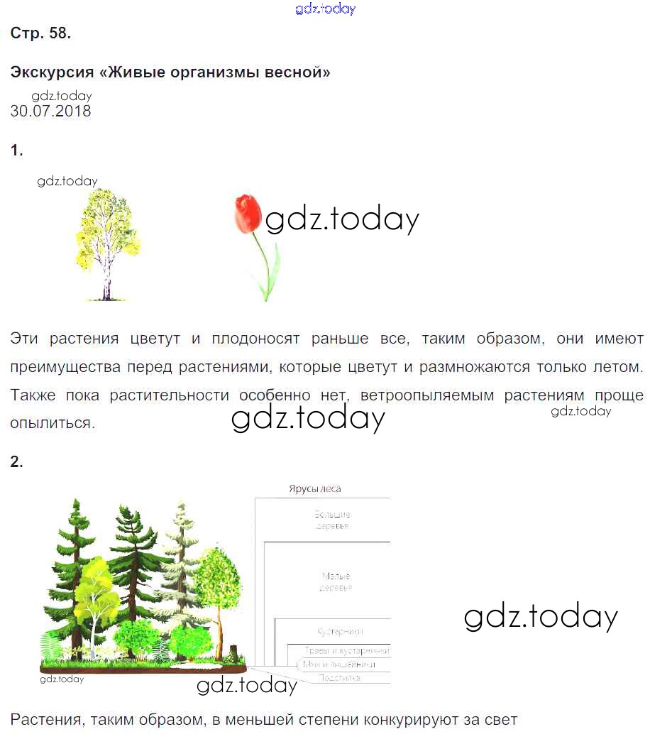 На страницах сайта gdz.today вы найдете учебный и вспомогательный материал, направленный на улучшения знаний школьной программы. ГДЗ - онлайн мир знаний Решение к части 2. Страницы 58 Рабочей тетради по Биологии для 5-6 класса Сухова, Строганов Вентана-граф Алгоритм успеха 2015