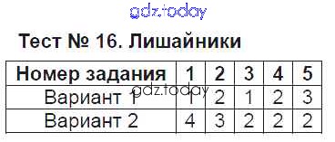 Ответы к Решение к тестам Тест №16. Лишайники Тестам по Биологии для 5 класса Богданов Экзамен УМК 2017