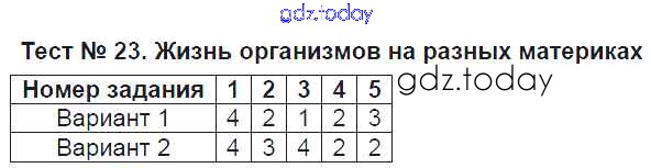 Ответы к Решение к тестам Тест №23. Жизнь организмов на разных материках Тестам по Биологии для 5 класса Богданов Экзамен УМК 2017