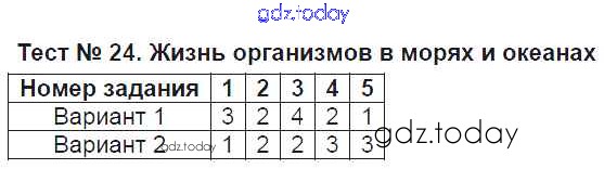 Ответы к Решение к тестам Тест №24. Жизнь организмов в морях и океанах Тестам по Биологии для 5 класса Богданов Экзамен УМК 2017