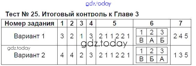 Ответы к Решение к тестам Тест №25. Итоговый контроль Тестам по Биологии для 5 класса Богданов Экзамен УМК 2017