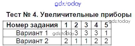 Ответы к Решение к тестам Тест №4. Увеличительные приборы Тестам по Биологии для 5 класса Богданов Экзамен УМК 2017