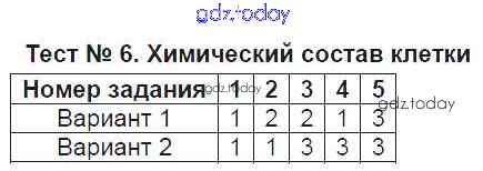 Ответы к Решение к тестам Тест №6. Химический состав клетки Тестам по Биологии для 5 класса Богданов Экзамен УМК 2017