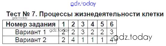 Ответы к Решение к тестам Тест №7. Процессы жизнедеятельности клетки Тестам по Биологии для 5 класса Богданов Экзамен УМК 2017