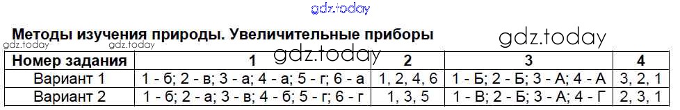 Ответы к Решение к тестам Тест №2. Методы изучения природы. Увеличительные приборы Тестам по Биологии для 5 класса Сонин Дрофа Вертикаль 2017