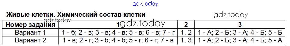 Ответы к Решение к тестам Тест №3. Живые клетки. Химический состав клетки Тестам по Биологии для 5 класса Сонин Дрофа Вертикаль 2017