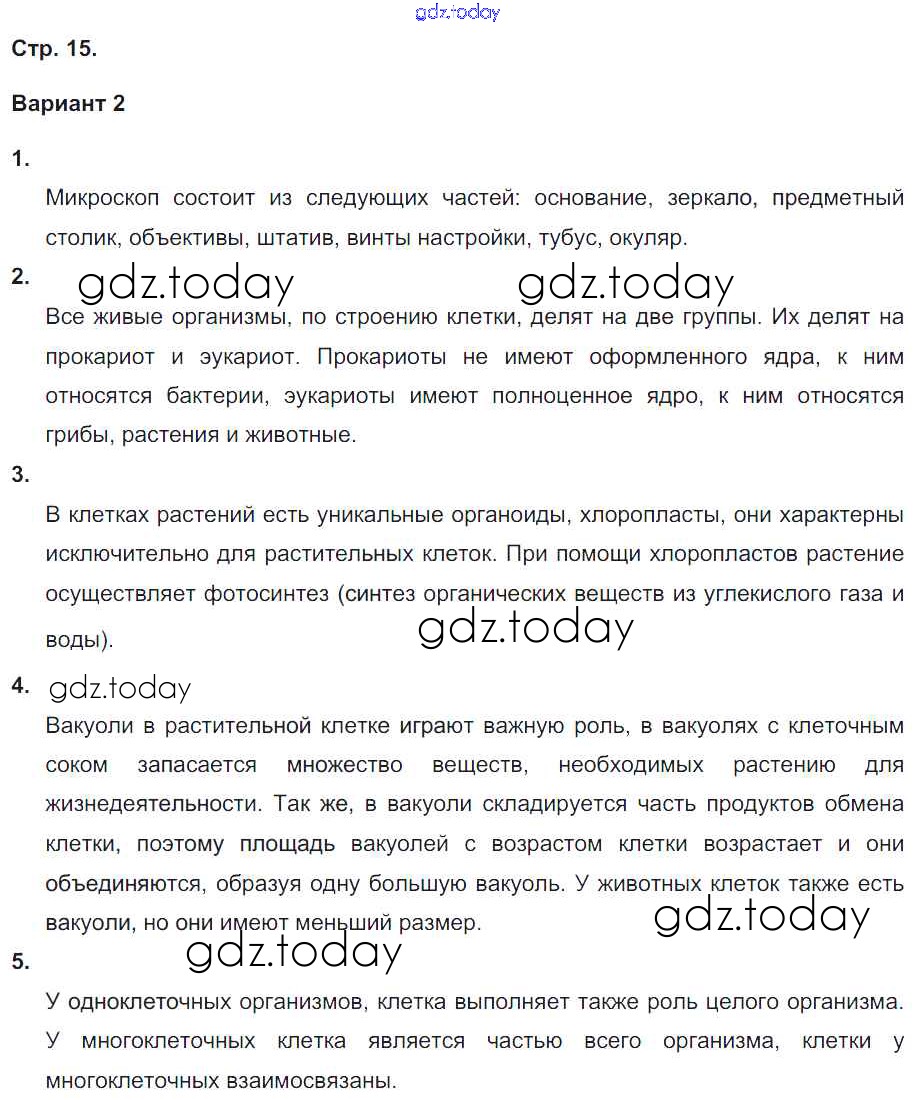 На страницах сайта gdz.today вы найдете учебный и вспомогательный материал, направленный на улучшения знаний школьной программы. ГДЗ - онлайн мир знаний Страницы (решение) 15 Тетради-экзаменатору по Биологии для 5-6 класса Сухорукова, Кучменко Просвещение Сферы 2017